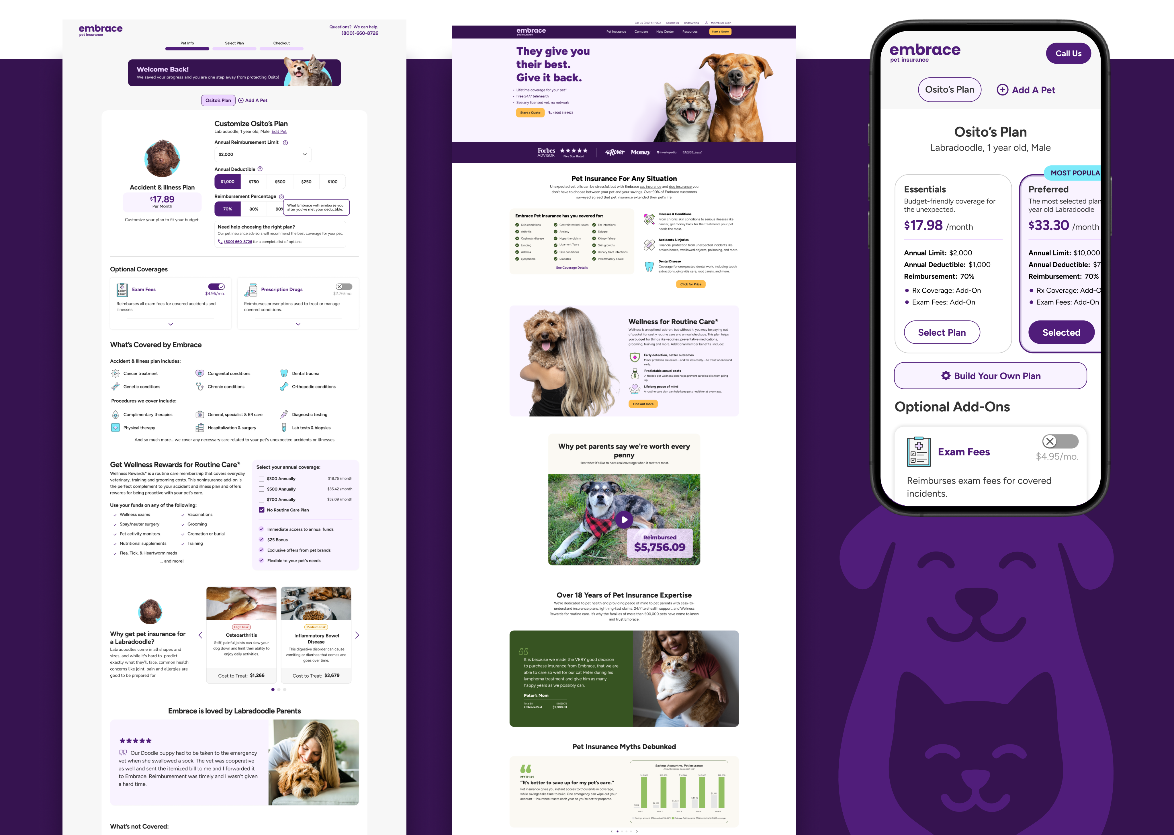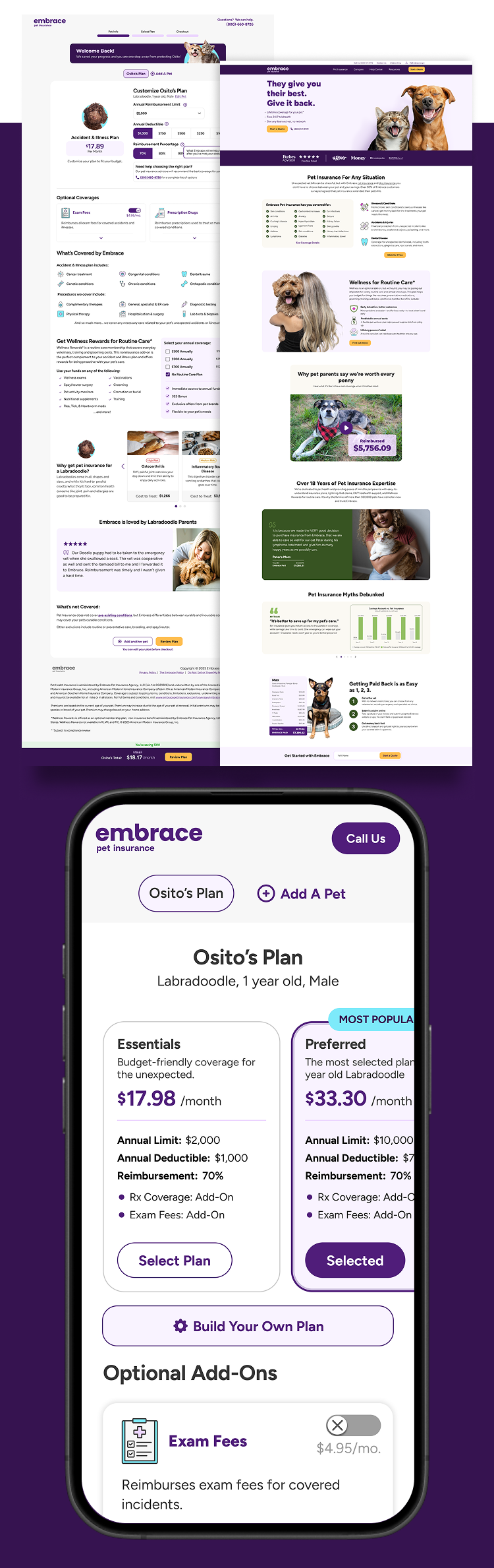The Challenge Embrace entered 2020 with a massive boost in brand visibility and consumer interest in pet insurance, due to unprecedented growth in pet adoption and ownership. With that visibility, Embrace had to asynchronously update their branding and website to keep with modern trends and web accessibility standards.